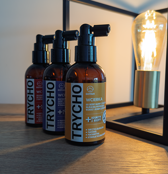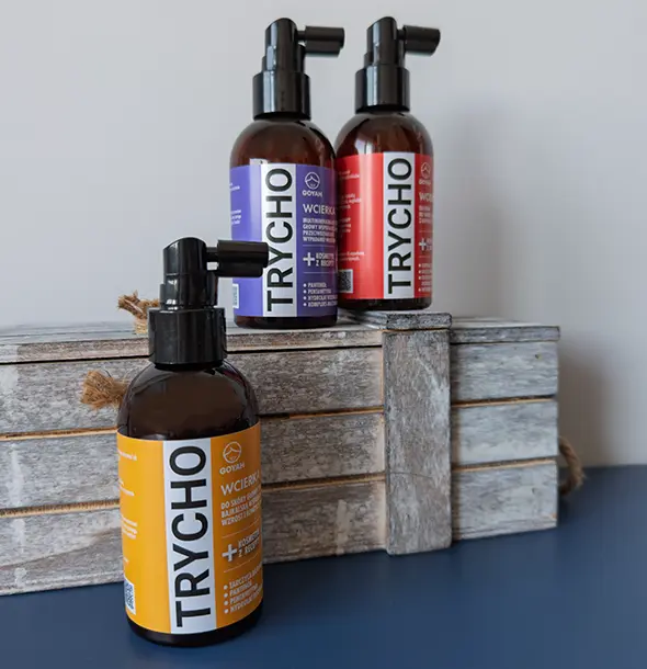 GOYAH to marka kosmetyków, która startuje od tego, co najbliższe skórze – wcierki trychologiczne TRYCHO, oparte na aktywnych składnikach wspierających zdrowie skóry głowy i wzrost włosów. Każdy produkt to efekt naszej wiedzy, pasji i zaufania do nauki.
